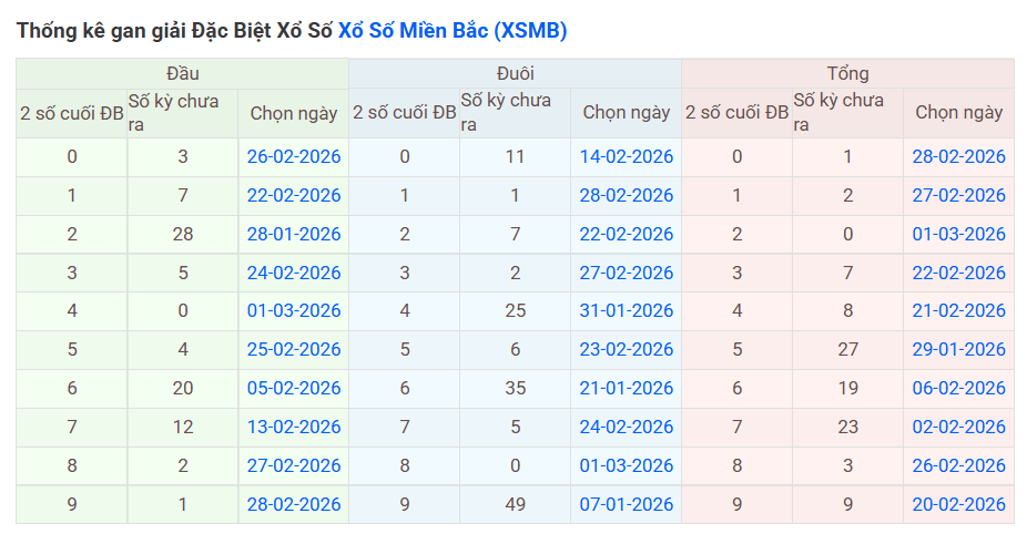 => Chi tiết thống kê đầu đuôi giải đặc biệt xem tại: