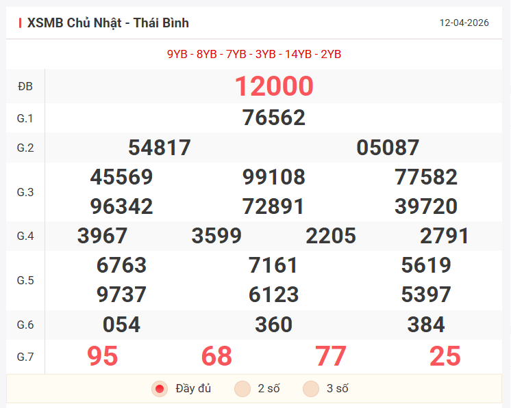 Tổng hợp kết quả xsmb hôm qua Chủ Nhật ngày 12/04/2026