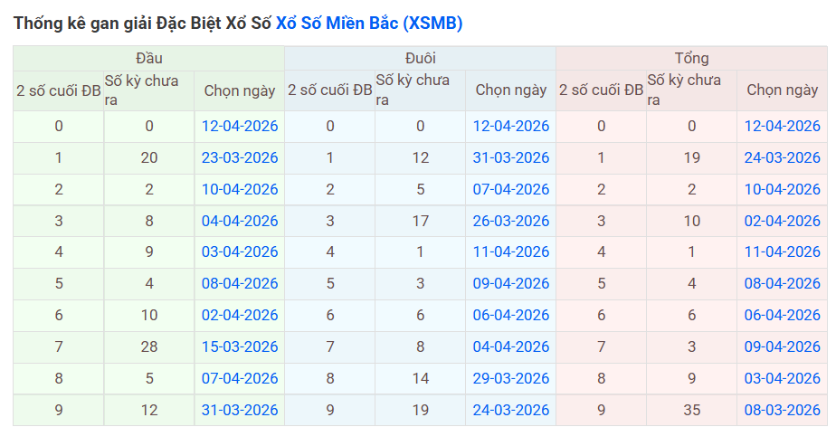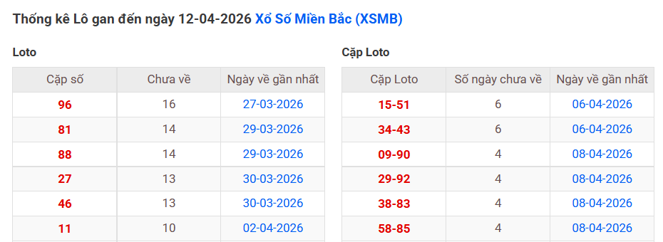⇒ Click vào để xem tổng hợp thông tin lô gan và cặp loto của xổ số miền Bắc tại:
