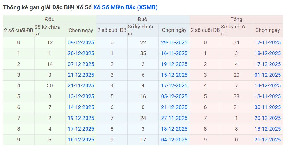 => Chi tiết thống kê đầu đuôi giải đặc biệt xem tại: