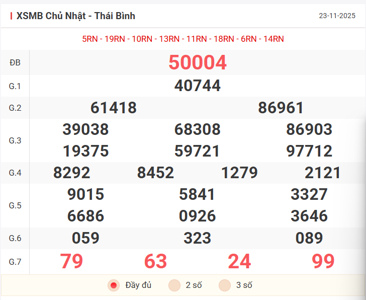 Tổng hợp kết quả xsmb hôm qua Chủ Nhật ngày 23/11/2025