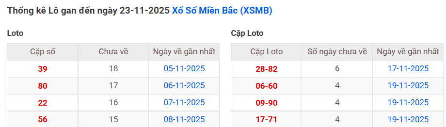 Thống kê cặp lô gan miền Bắc lâu chưa về