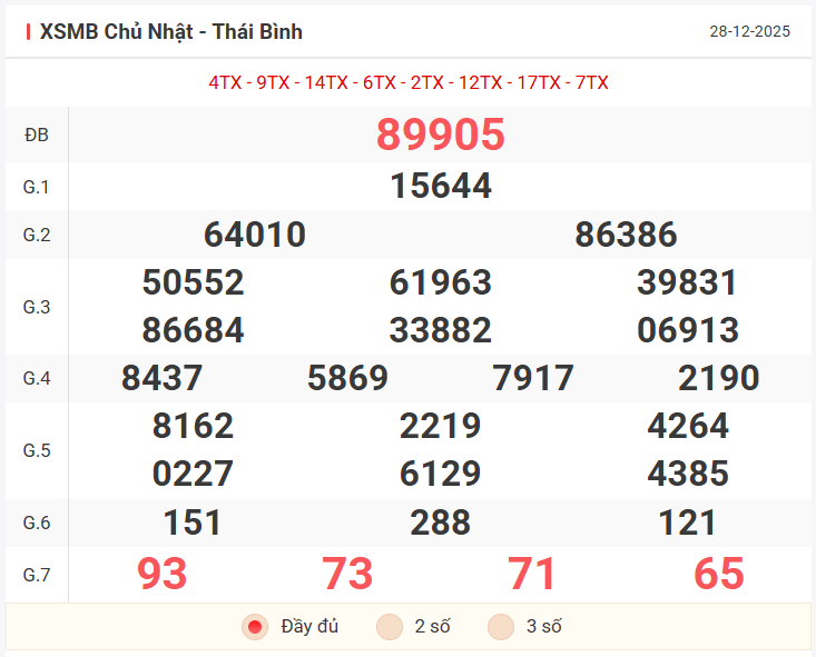 Tổng hợp kết quả xsmb hôm qua Chủ Nhật ngày 29/12/2025