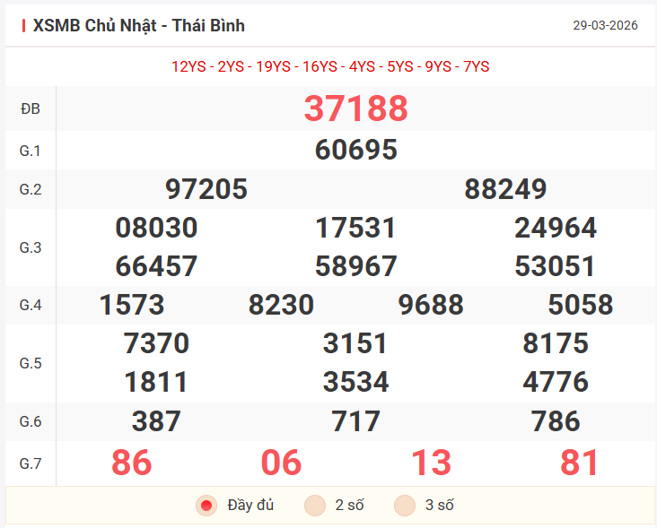 Tổng hợp kết quả xsmb hôm qua Chủ Nhật ngày 29/03/2026