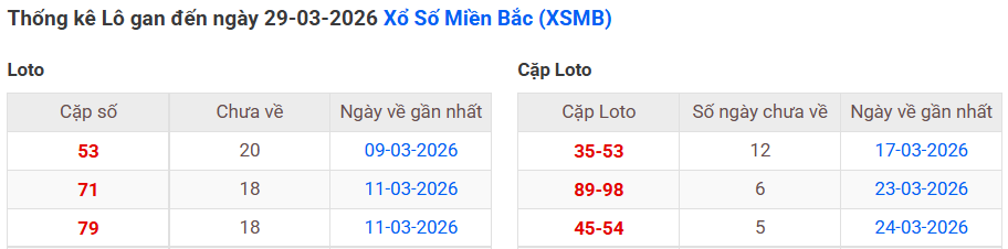 ⇒ Click vào để xem tổng hợp thông tin lô gan và cặp loto của xổ số miền Bắc tại: