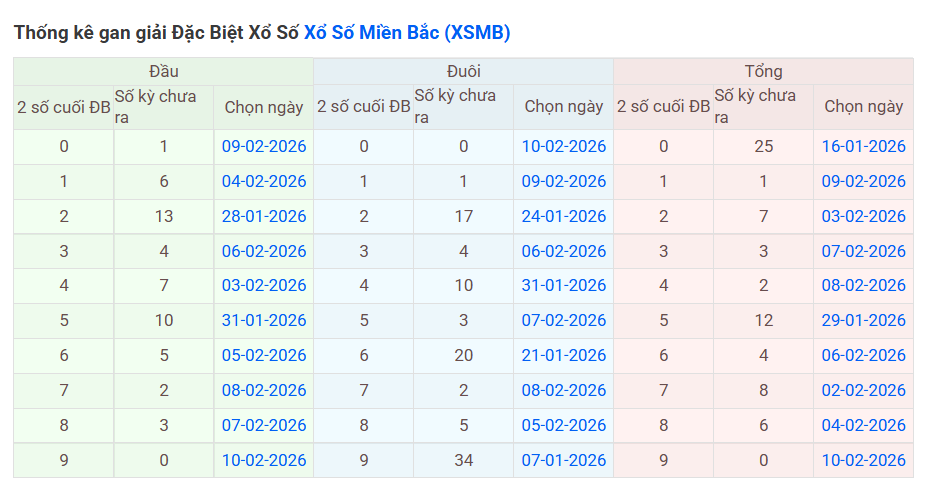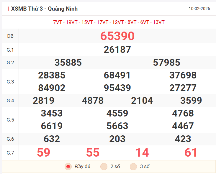 Tổng hợp kết quả xsmb hôm qua thứ 3 ngày 10/02/2026