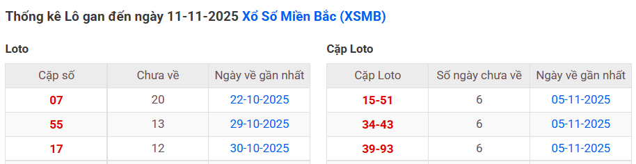 ⇒ Click vào để xem tổng hợp thông tin lô gan và cặp loto của xổ số miền Bắc tại: