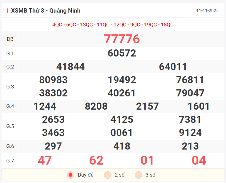 Tổng hợp kết quả xsmb hôm qua thứ 3 ngày 11/11/2025