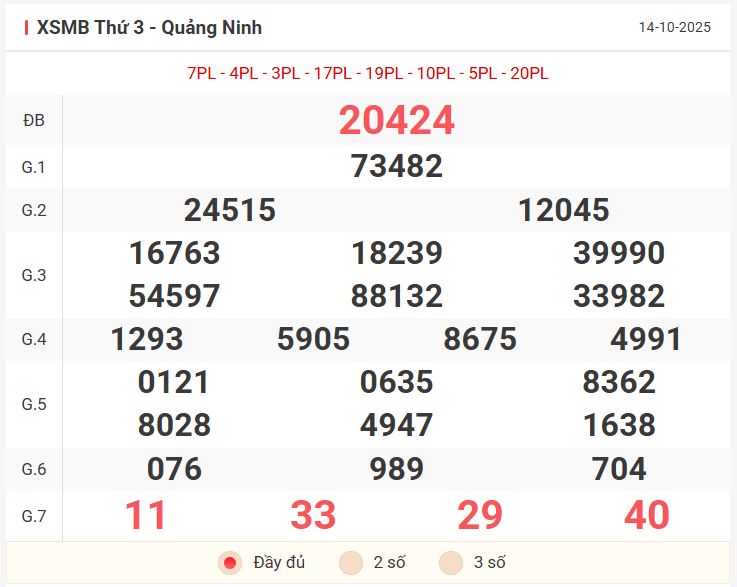 Tổng hợp kết quả xsmb hôm qua thứ 3 ngày 14/10/2025