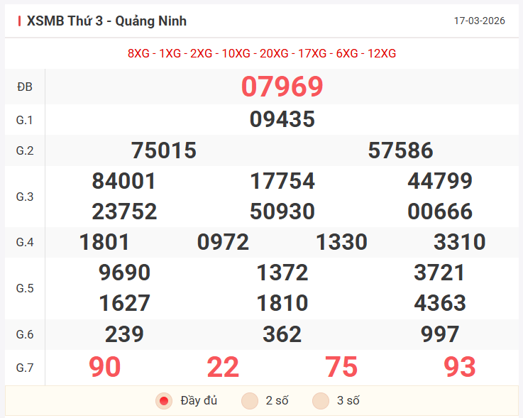 Tổng hợp kết quả xsmb hôm qua thứ 3 ngày 17/03/2026