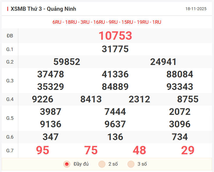 Tổng hợp kết quả xsmb hôm qua thứ 3 ngày 18/11/2025