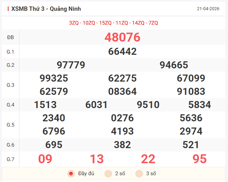 Tổng hợp kết quả xsmb hôm qua thứ 3 ngày 21/04/2026