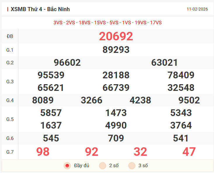 Tổng hợp kết quả xsmb hôm qua thứ 4 ngày 11/02/2026