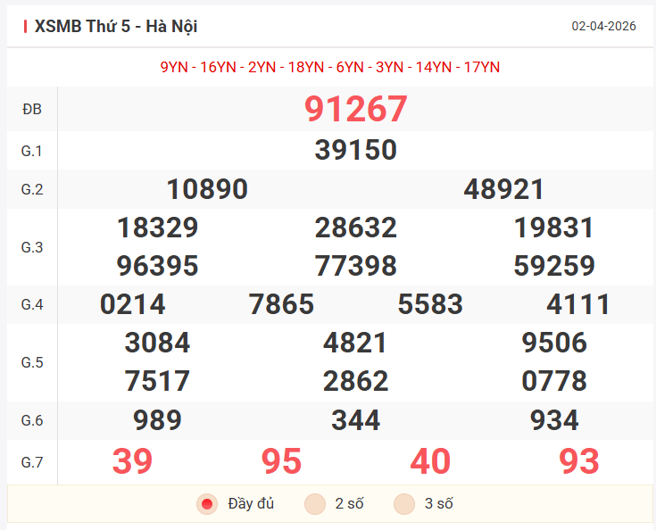 Tổng hợp kết quả xsmb hôm qua thứ 5 ngày 02/04/2026