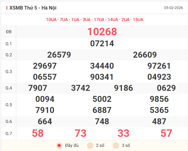 Tổng hợp kết quả xsmb hôm qua thứ 5 ngày 06/02/2026