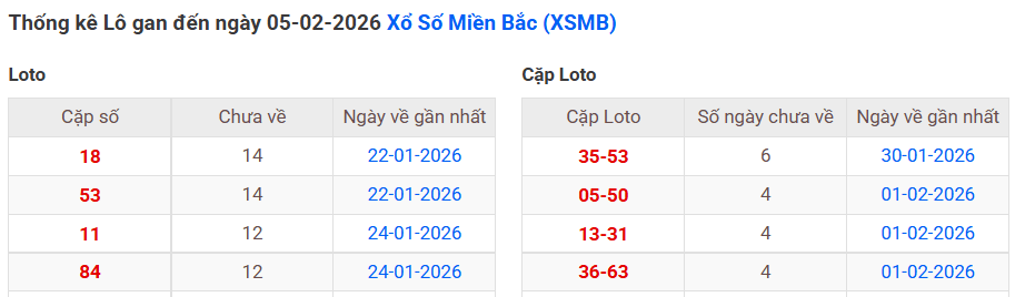 ⇒ Click vào để xem tổng hợp thông tin lô gan và cặp loto của xổ số miền Bắc tại: