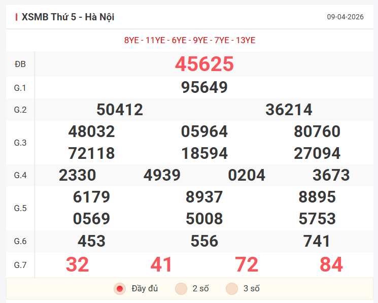 Tổng hợp kết quả xsmb hôm qua thứ 5 ngày 09/04/2026