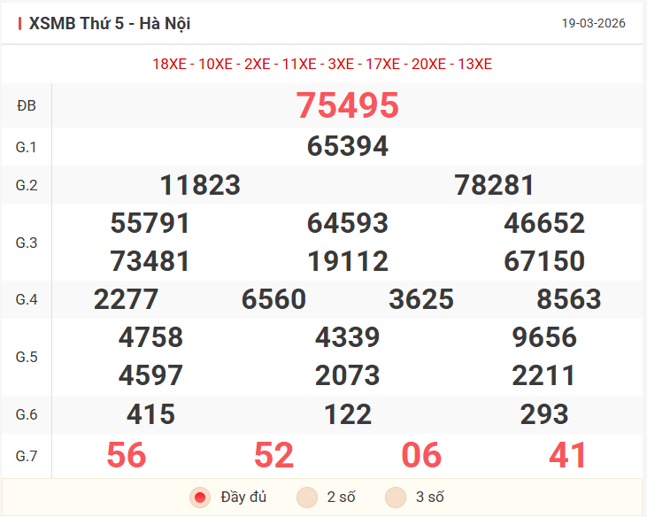 Tổng hợp kết quả xsmb hôm qua thứ 5 ngày 19/03/2026