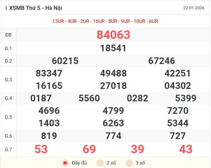 Tổng hợp kết quả xsmb hôm qua thứ 5 ngày 22/01/2026
