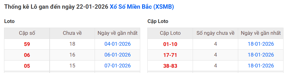 ⇒ Click vào để xem tổng hợp thông tin lô gan và cặp loto của xổ số miền Bắc tại: