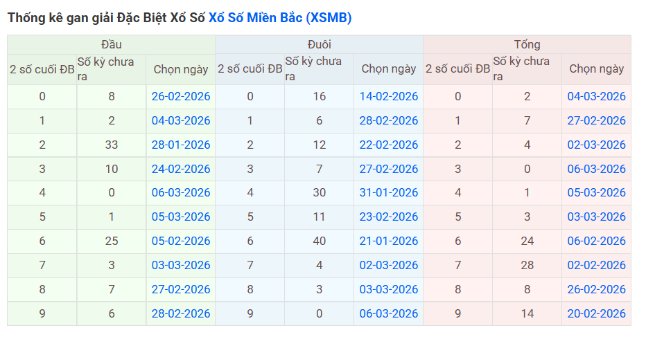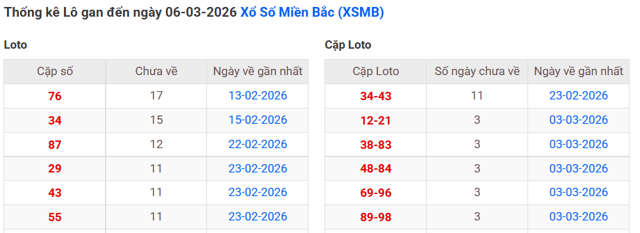 ⇒ Click vào để xem tổng hợp thông tin lô gan và cặp loto của xổ số miền Bắc tại: