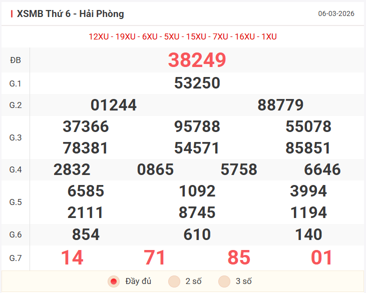 Tổng hợp kết quả xsmb hôm qua thứ 6 ngày 06/03/2026