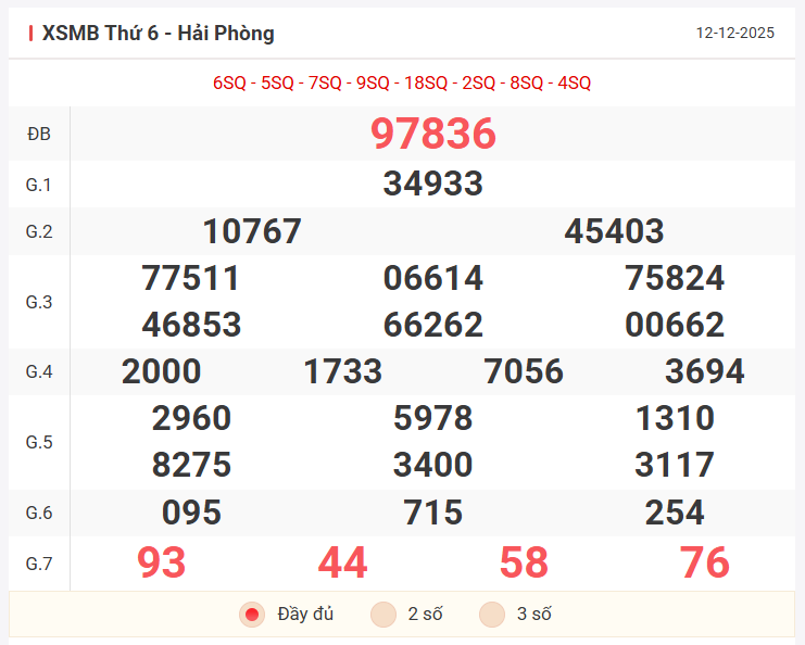 Tổng hợp kết quả xsmb hôm qua thứ 6 ngày 12/12/2025