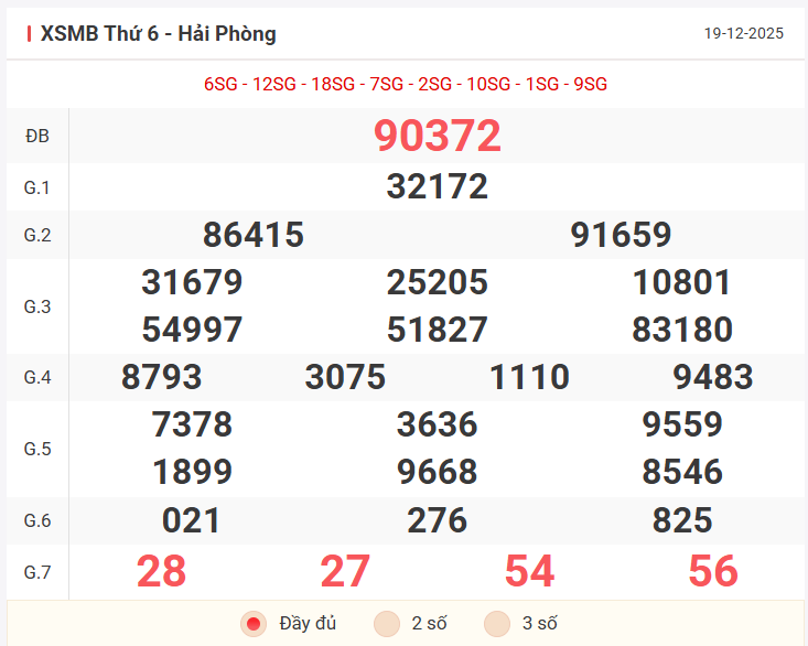 Tổng hợp kết quả xsmb hôm qua thứ 6 ngày 19/12/2025