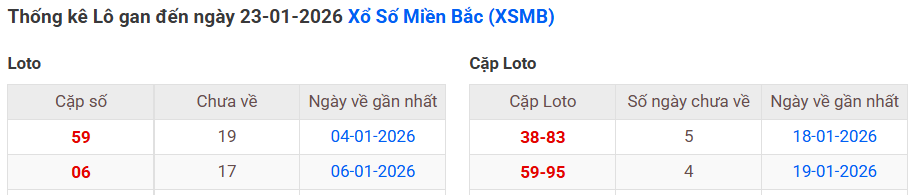 ⇒ Click vào để xem tổng hợp thông tin lô gan và cặp loto của xổ số miền Bắc tại: