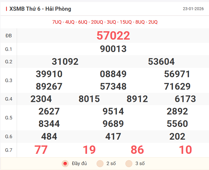 Tổng hợp kết quả xsmb hôm qua thứ 6 ngày 23/01/2026
