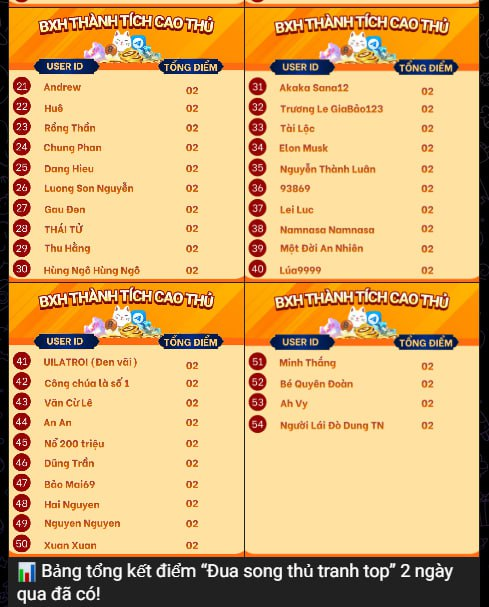 TỔNG KẾT HOẠT ĐÔNG – CAO THỦ TRANH TÀI | KÊNH TELEGRAMTHẦN MÈO ĐÃ TRẢ THƯỞNG